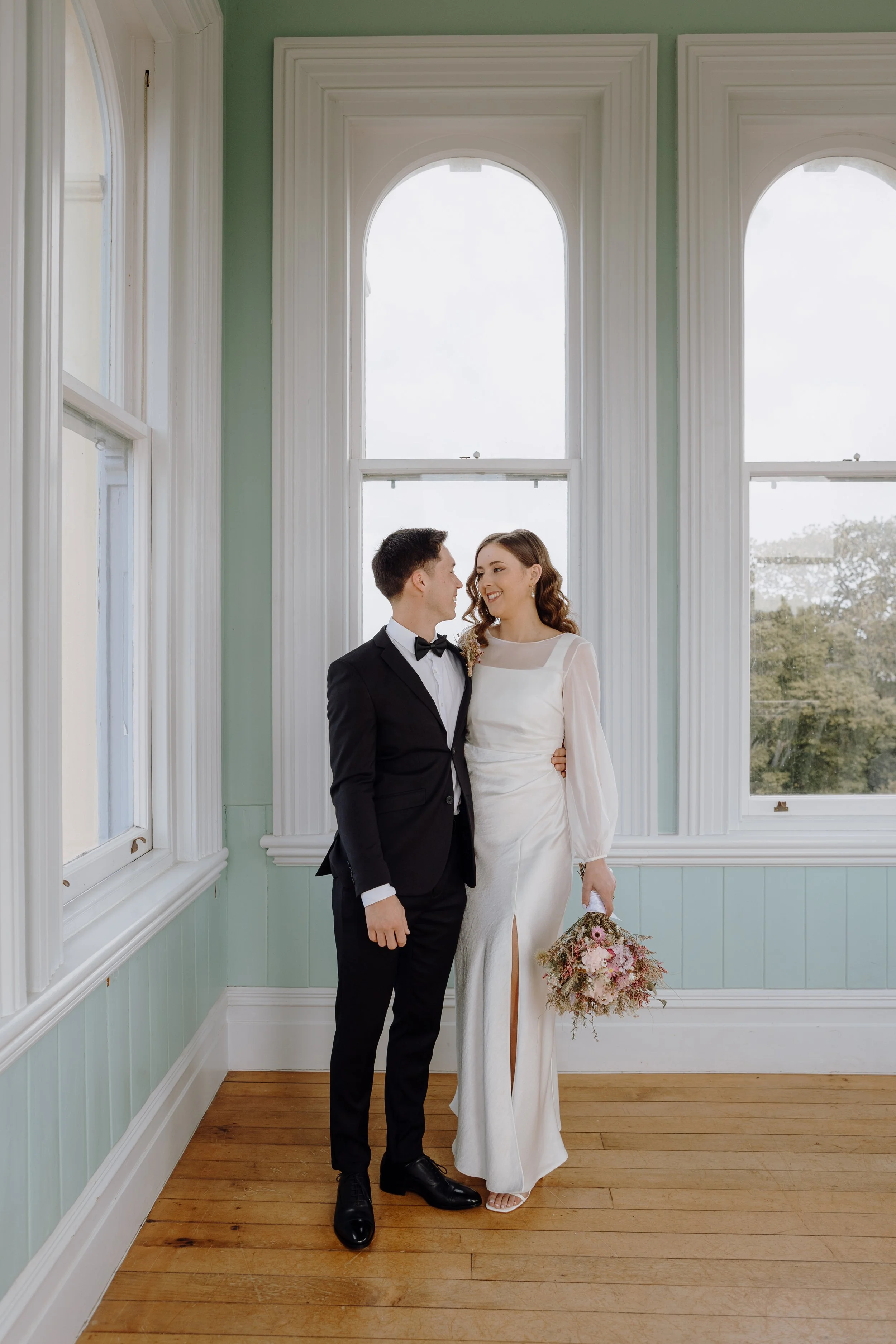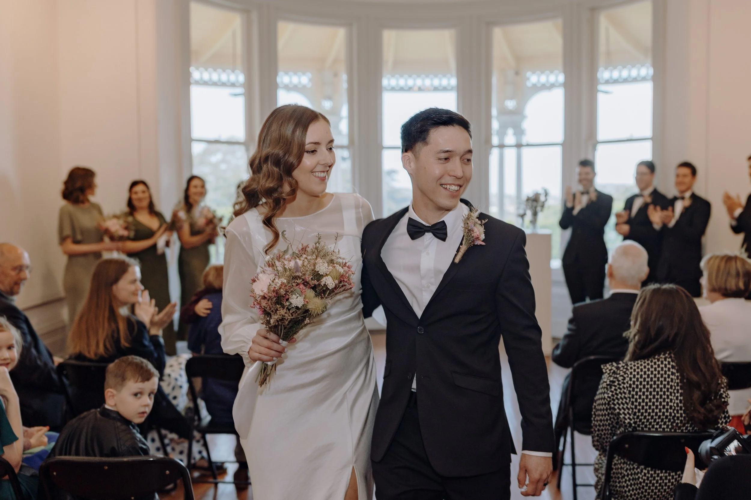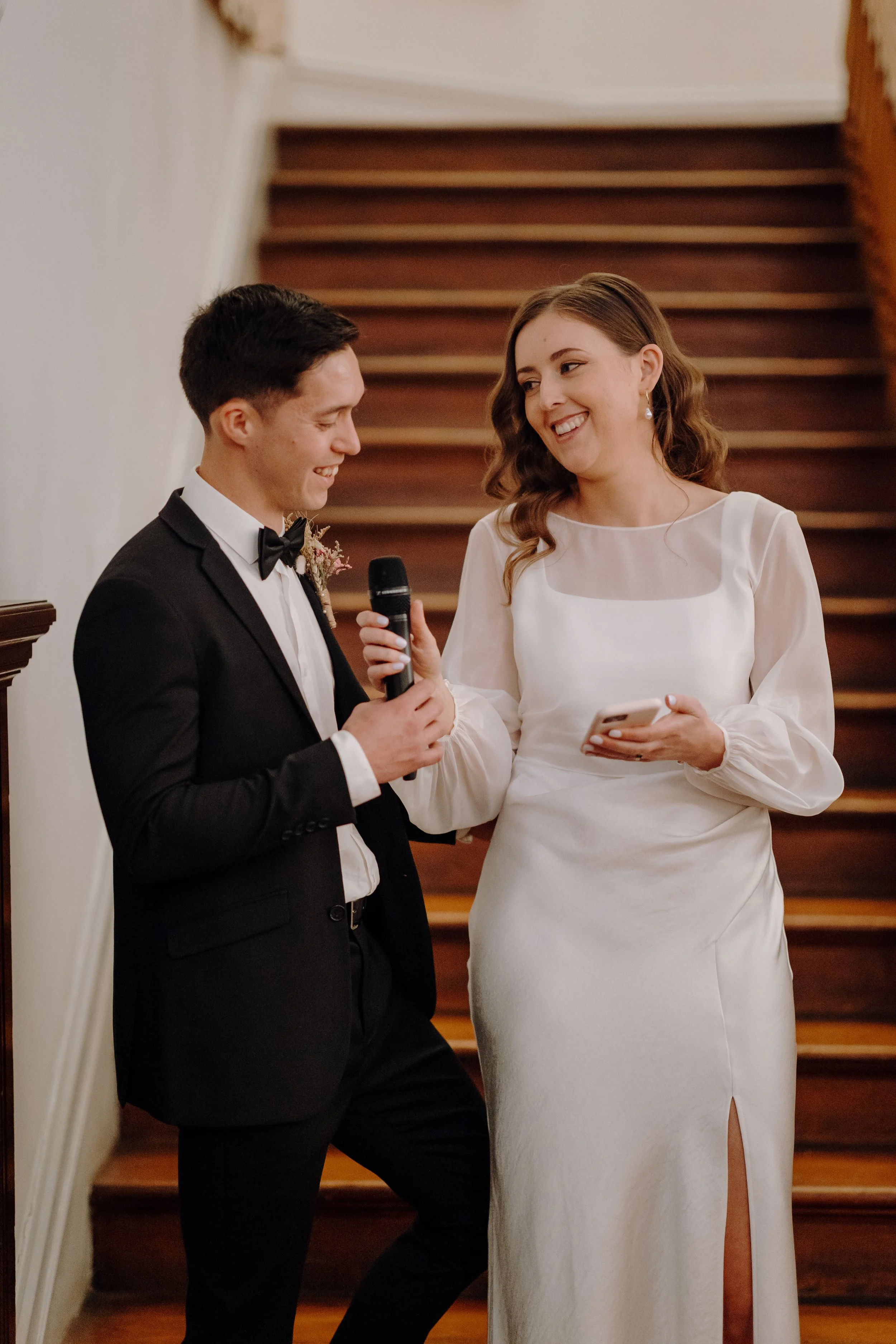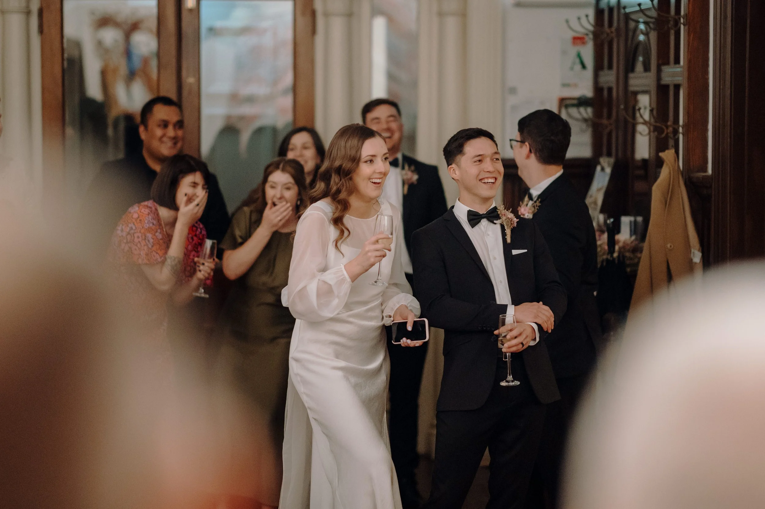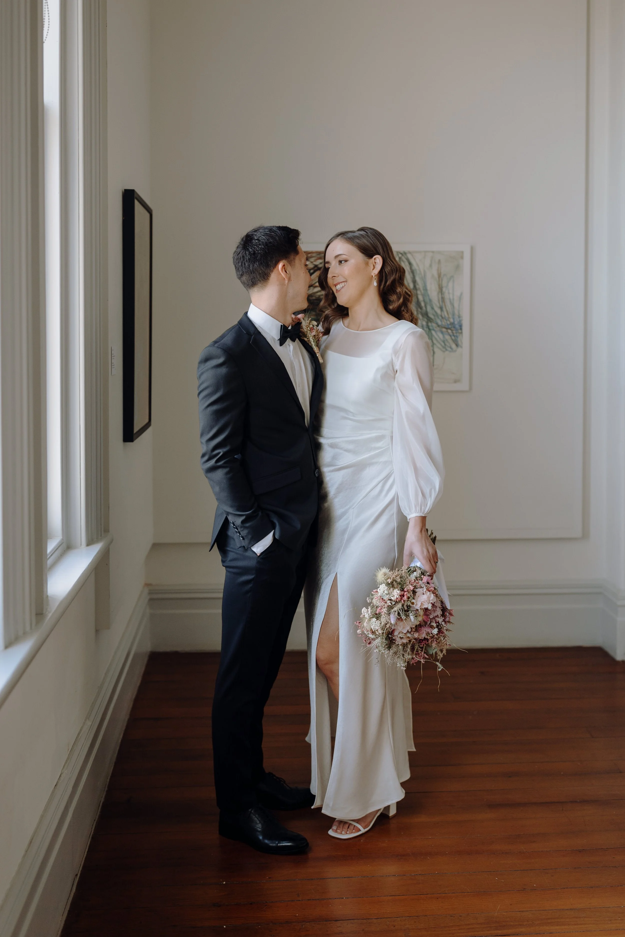 Mel and Micah’s wedding at the Arts House Trust in Auckland was a beautiful celebration of art, community, and connection. Set in the crisp tones of an Auckland autumn, their day was a reflection of everything they value—good food, good people, and a warm, relaxed atmosphere.