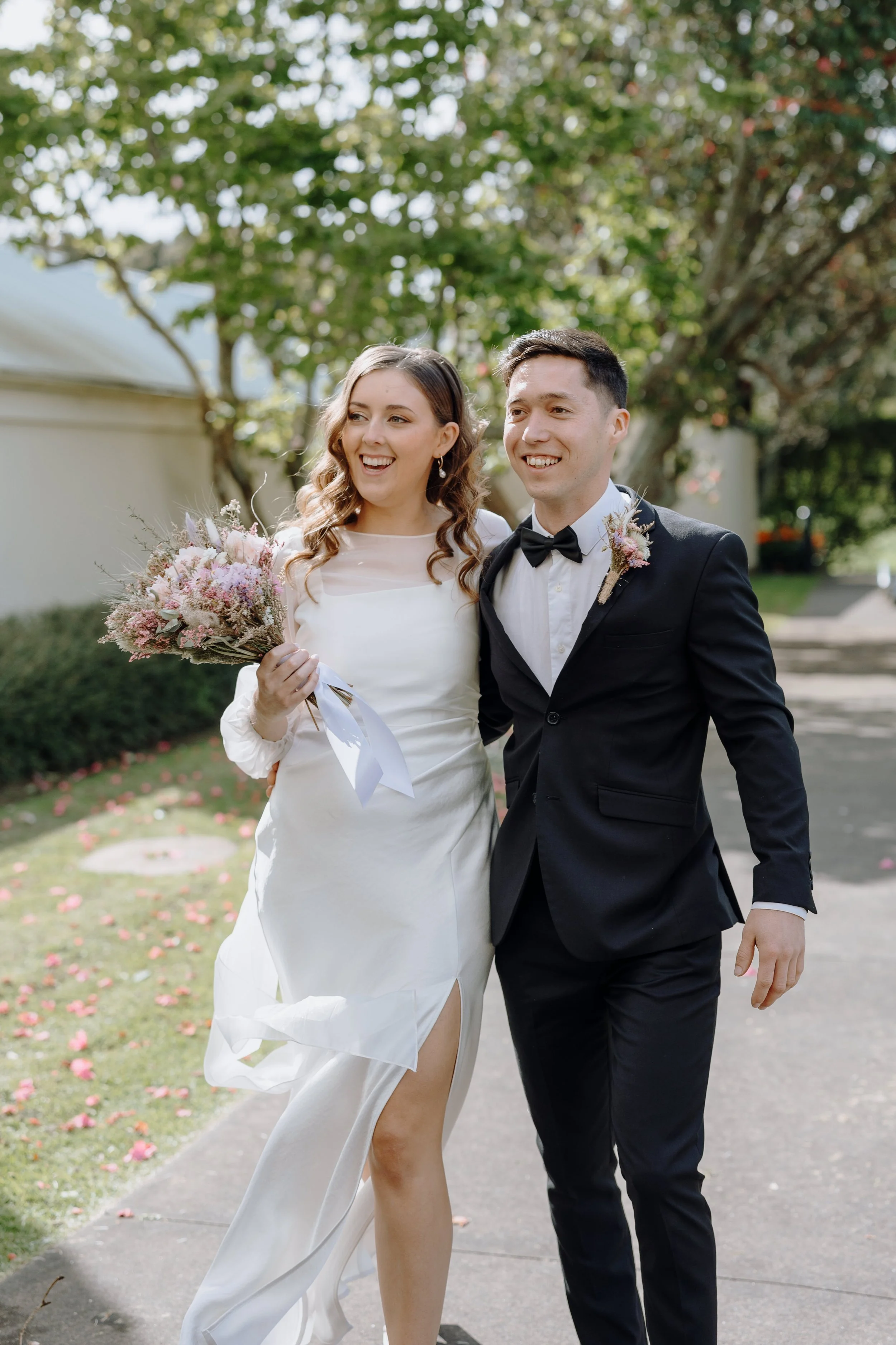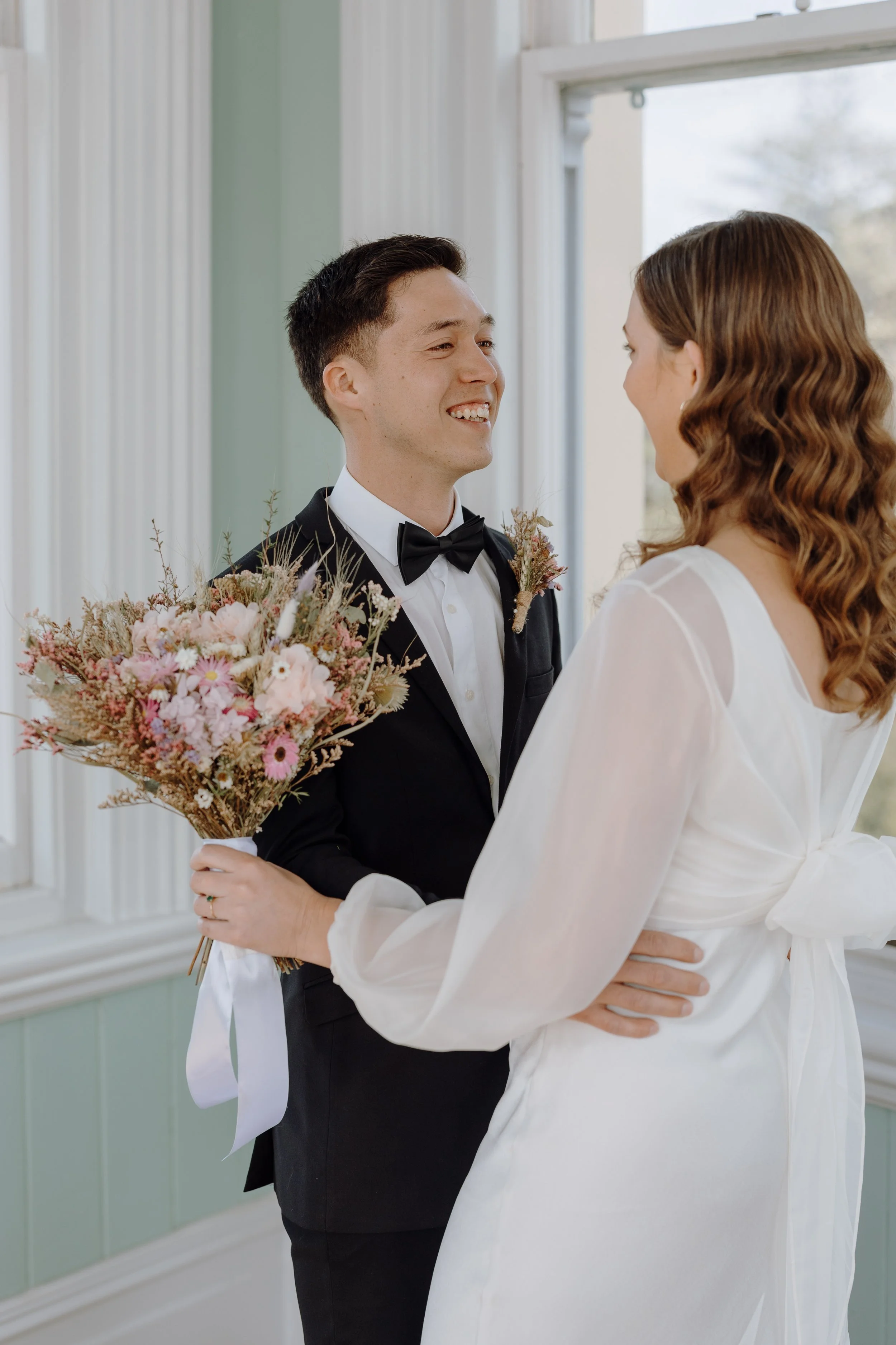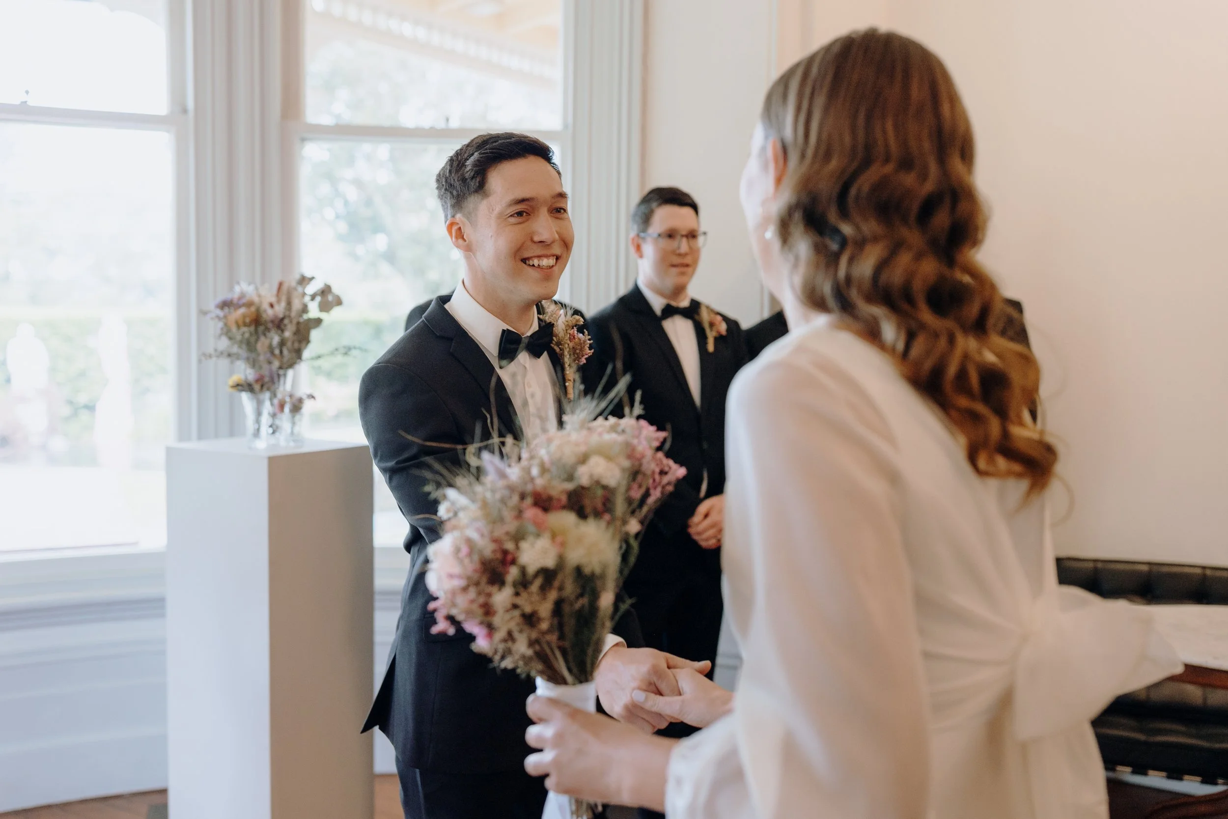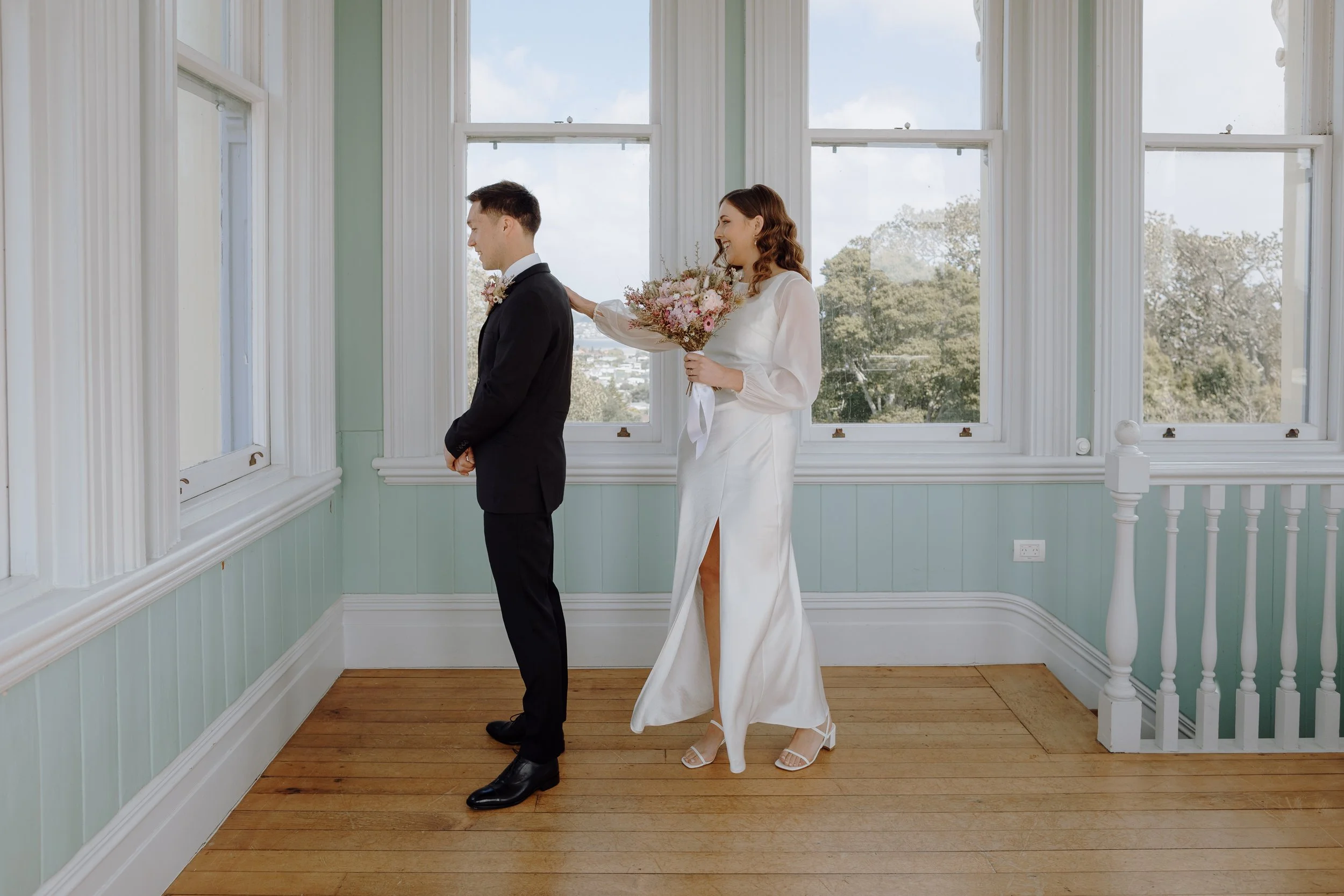 Located in the historic Pah Homestead, Arts House Trust provided a unique and meaningful backdrop. Surrounded by contemporary art and heritage charm, the venue perfectly matched Mel and Micah’s desire to celebrate creativity and authenticity all the while being prepared for the unpredictable Auckland weather.